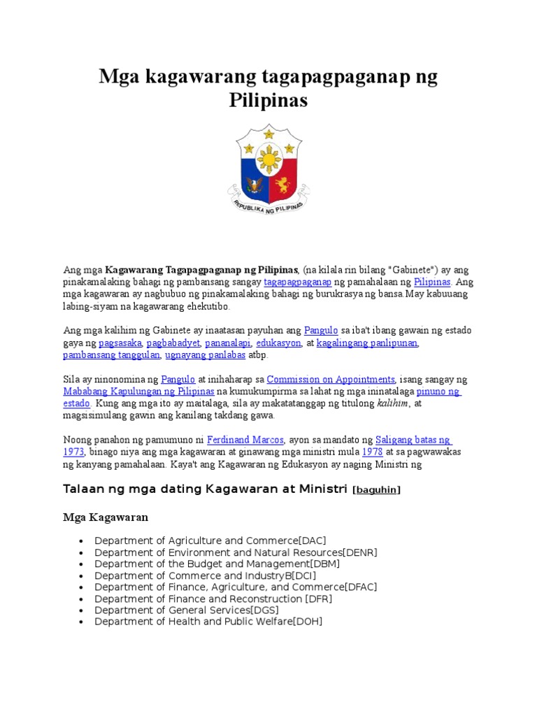 Listahan ng Ibat ibang Ahensya ng Pamahalaan ng Pilipinas Kagawaran ng Ugnayang Panlabas. FRANCISCO DUQUE Department of Health magbigay pa po kayo ng 10 alexisarceodaniellec is waiting for your help. 167 at 2711 ang pagkakaroon ng mga personal na kalihim.