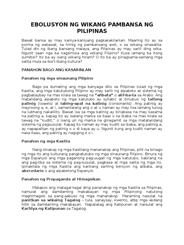 Ebolusyon Ng Wikang Pambansa Ng Pilipinas