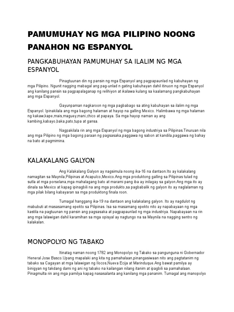 Pamumuhay Ng Mga Pilipino Noong Panahon Ng Espanyol