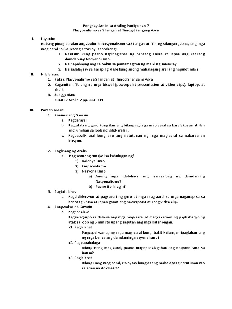 Nasyonalismo sa silangan at timog silangang asya lesson plan. Ang mga pinakitang watawat ay ang ilan sa mga bansa sa Silangan at 4. I made this lesson plan with the help of my head teacher in Araling Panlipunan sir Roel DC. Nabibigyang halaga ang papel ng nasyonalismo sa pagbuo ng mga bansa sa Silangan at Timog-Silangang Asya.